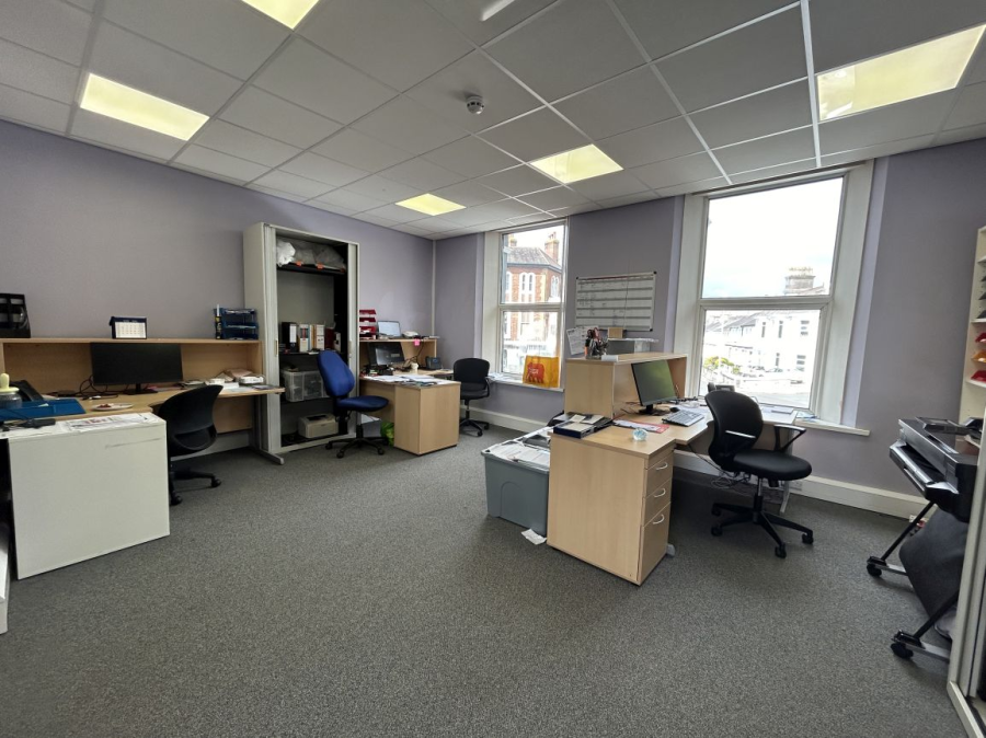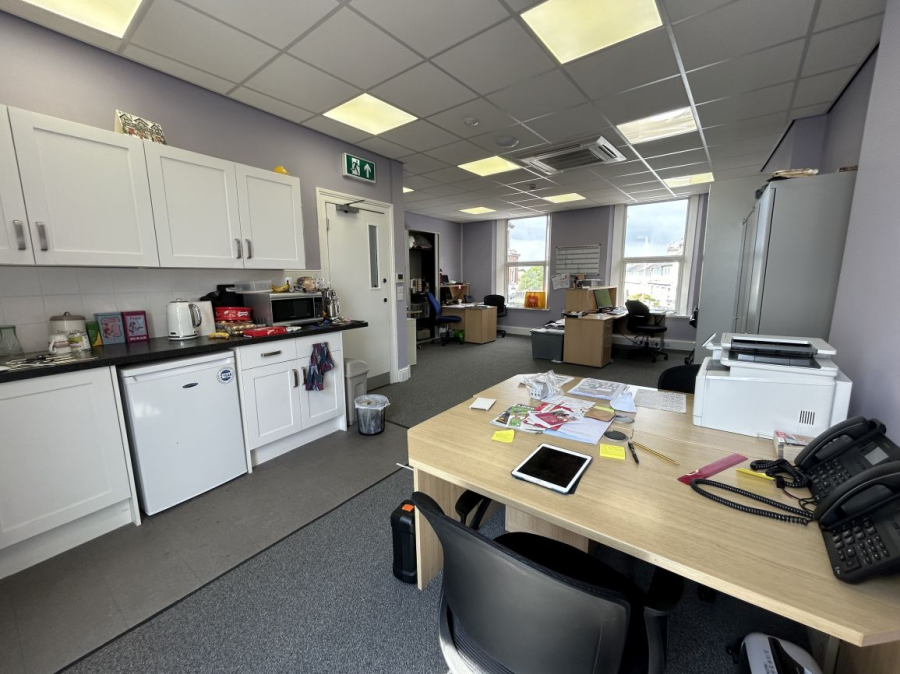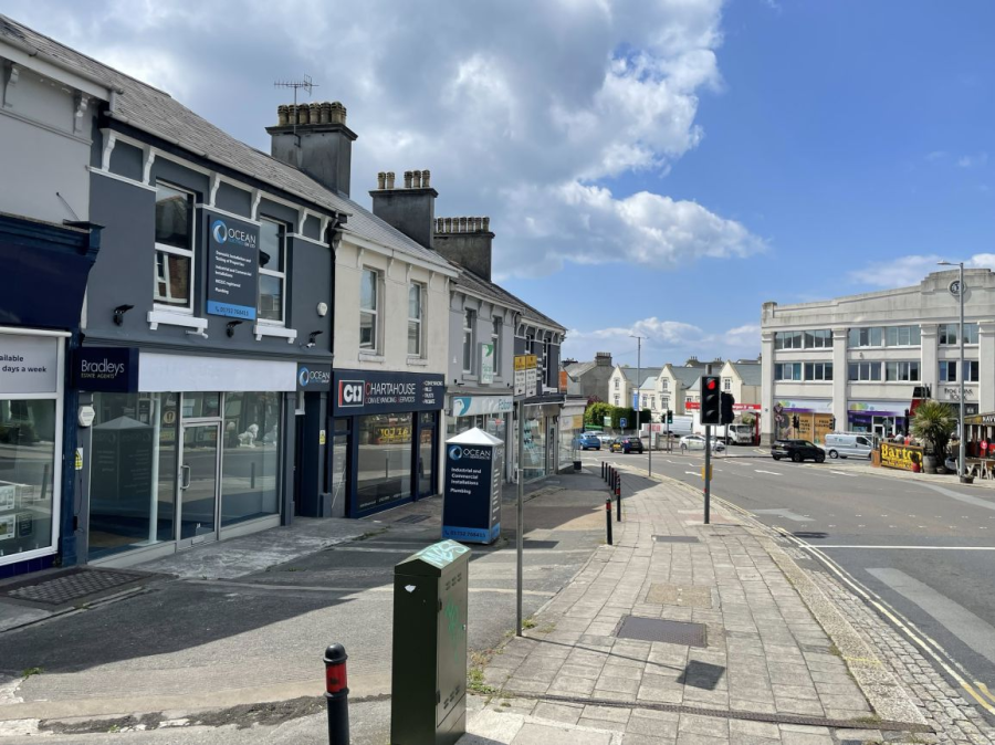 Mid-terraced, self-contained, first floor office located on Mannamead Road, at the northern end of Mutley Plain a bustling high street. The office is mainly open plan, with a separate managers office/meeting room and staff welfare are. The specification includes suspended ceilings incorporating LED lighting panels, kitchenette and carpets throughout. Access is via a self-contained entrance to the front of the building. Allocated parking for one vehicle in a rear carpark. EPC C55.